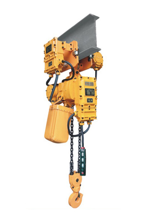 BHH防爆環鏈電動葫蘆簡介: BHH型防爆電動刮曲回低起升 高度的鋼絲繩電動葫蘆的最理想替代產品。一般安裝在架空工字鋼軌道上,或懸掛在固定架和專用吊具上起吊貨物及與設備配套到等,廣泛應用到工、山倉庫、碼頭、建筑工地、商場、賓館等行業,尤其適合低矮場合及存在灰塵、潮濕腐朽氣體等環境。BHH型防爆環鏈電動葫蘆是參照并吸收了國內外同類產品的結構優點而設計的,它不但具備了國外產品的很多優點,而且還具備維修方便、實用可靠、價格低廉等優點,從而更適應于我國的實際國情。