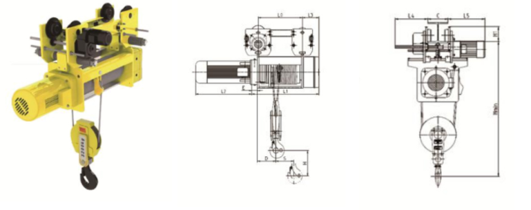 | 型號 | 起重量(T) | 工作級別 | 滑輪倍率 | 起升速度(m/min) | 起升電機功率(kw) | L2(mm) | φmm | Amm | A0mm | Bmm | Hmin mm | L3 mm | S mm | |