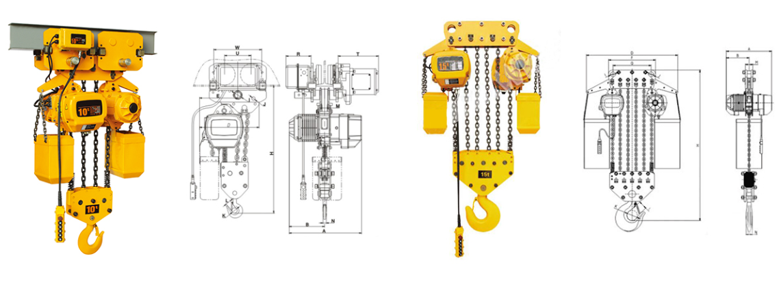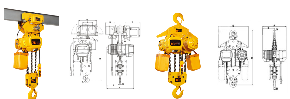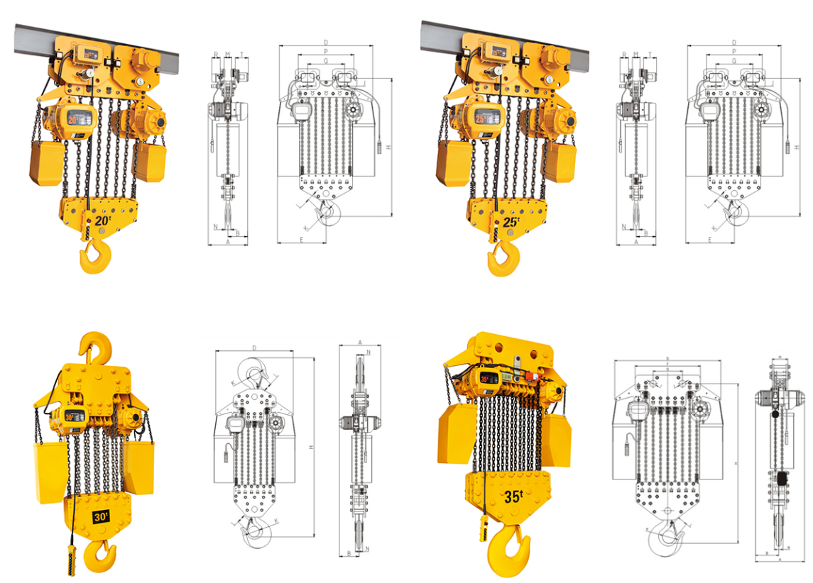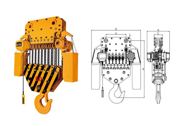 | 掛板式環鏈電動葫蘆(7.5T-50T) 尺寸參考: | ||||||||