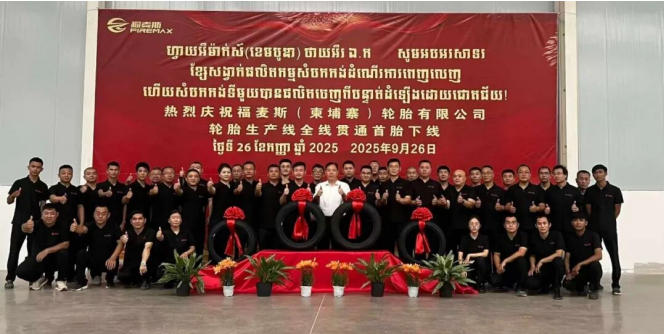 9月26日上午,由中啟控股集團(tuán)投資建設(shè)的柬埔寨桔井省經(jīng)濟(jì)特區(qū)再傳喜訊!熱烈慶祝特區(qū)入駐企業(yè)——福麥斯(柬埔寨)輪胎有限公司輪胎生產(chǎn)線全線貫通首胎下線!